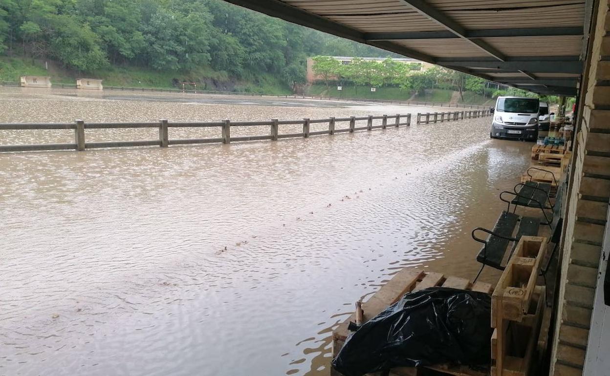 Allí, el agua comenzó a caer con fuerza alrededor de las 17.00 horas y durante una hora no cesó. En Eskoriatza, las riadas que se formaron en Almen provocaron que el polideportivo Juan Ramon Arana de la ikastola se inundara y que torrenteras de agua fueran a desembocar a la pista de recreo de los escolares que antaño fue un campo de fútbol. Los bomberos tuvieron que acudir para tratar de evitar que las inundaciones fueran a más, y desbloquear de ramas y troncos el riachuelo que discurre por la parte de arriba de la ikastola.
