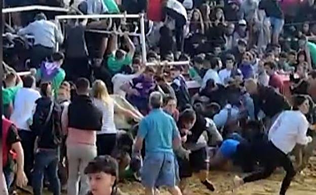 Por suerte, todas ellas llevaban las astas protegidas para no cornear a nadie aunque los golpes a los chavales han sido repetidos tanto con los propios cuernos como con las patas o la cabeza de los propios animales. Por suerte, ninguno de los asistentes han sufrido heridas de gravedad.
