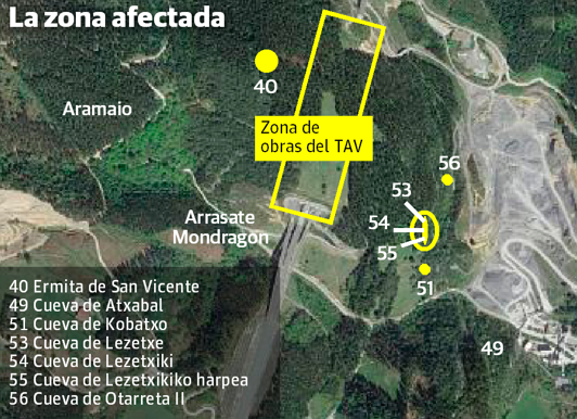 La polémica se desató a raíz de un comunicado de un grupo de espeleólogos, sin autorización para acceder a este zona protegida, en el que se denuncian desperfectos que han documentado con fotografías y vídeos obtenidos el pasado día 28 en el interior de la cueva de Leibar y que, según aseguran, tienen su origen en las obras del TAV, en concreto, en la construcción de los túneles del tramo Arrasate-Elorrio.