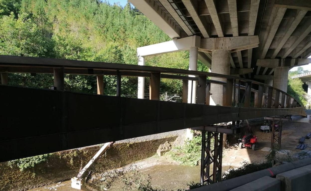 Este fin de semana se ha procedido a la colocación de una pasarela de 80 metros sobre el río Ego en el tramo Azitain-Maltzaga