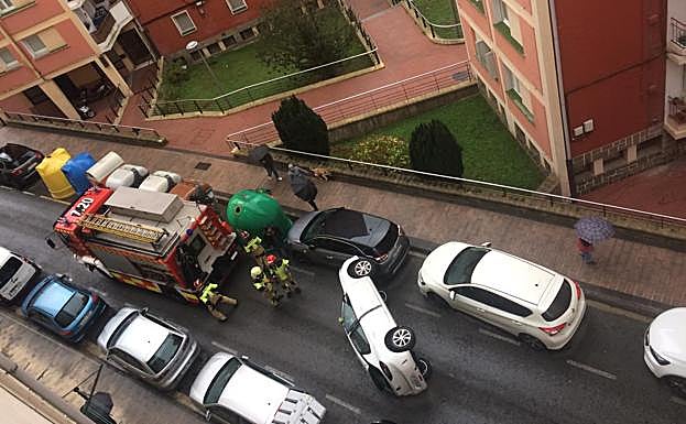 El accidente, que se ha producido sobre las 10.00 horas en la estrecha calle Romualdo Galdós, se ha saldado sin heridos