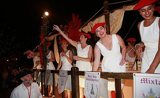 Las veinte protagonistas de la fiesta de este domingo han desfilado en una carroza por las calles de la localidad bidasotarra
