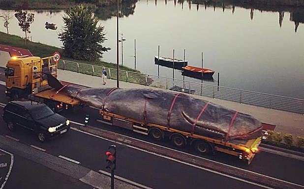 El pasado miércoles, muchos vecinos de Irun se encontraron con unas imágenes en sus teléfonos móviles que los dejaron perplejos. Un camión transportaba, a la altura de los barrios de Behobia y Artia, un enorme cachalote muerto a la vista de todo el mundo.