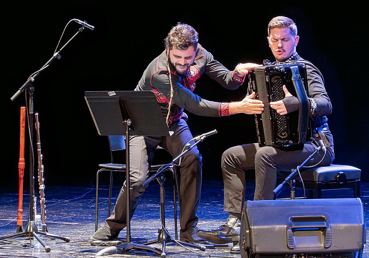 A continuación, la cabeza del cartel del festival, MoldoDuo, ocupó el escenario. Los protagonistas, el acordeonista Radu Ratoi y Stefan Diaconu, con la flauta travesera, iniciaron un diálogo musical en el que la complicidad entre ambos músicos quedó patente. Los músicos agradecieron la nueva invitación de Zero Sette, siendo la tercera visita del acordeonista Radu Ratoi a Lasarte-Oria.