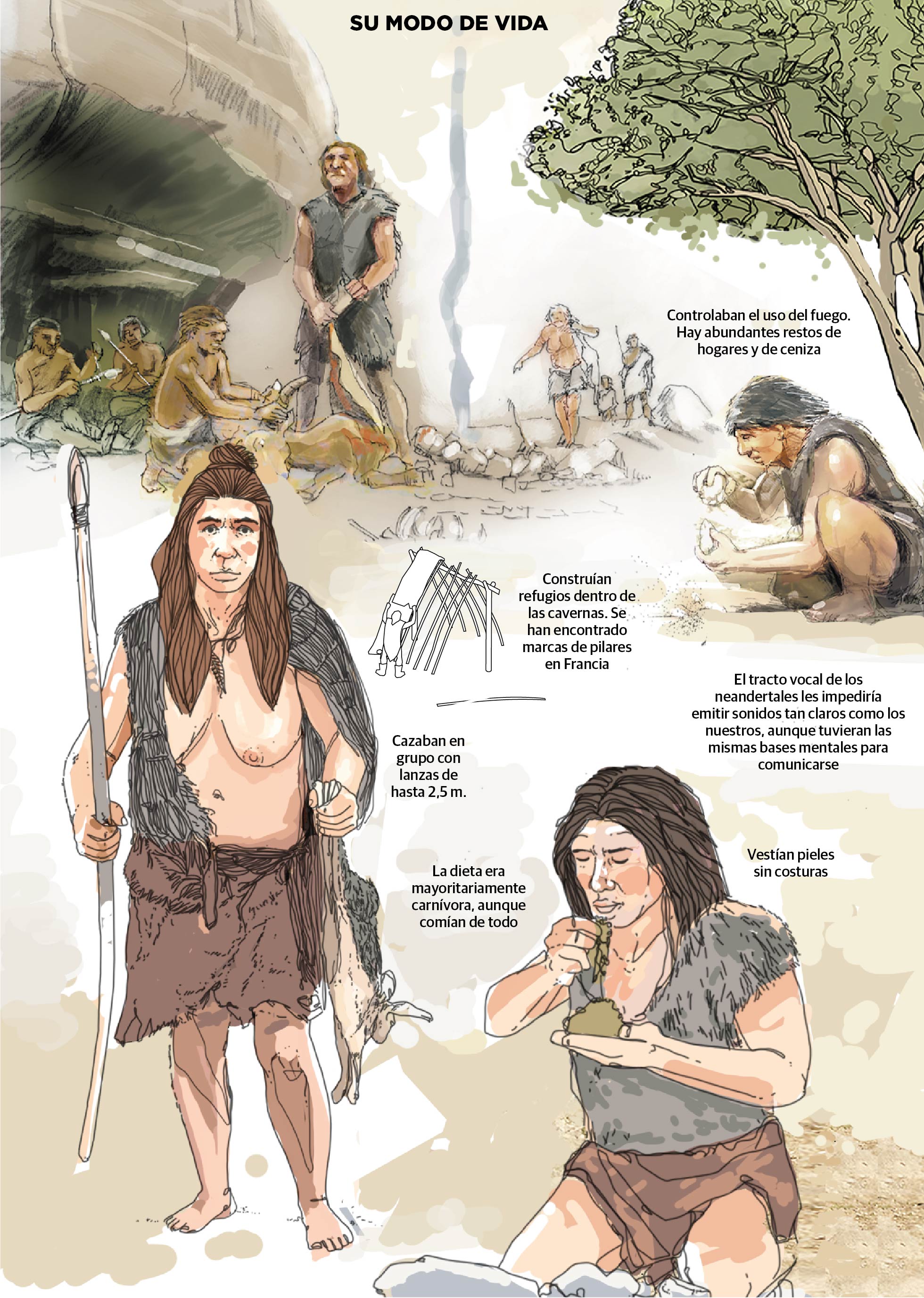 Así que la respuesta a la pregunta de qué comían los neandertales puede resultar desconcertante por obvia: «Comían lo que podían, lo que tenían al alcance de sus recursos en su medio», resume Bermúdez de Castro. «Cada homínido ha comido lo que ha podido, lo que ha tenido a su disposición». «Los homínidos de nuestra filogenia, o de nuestra genealogía si se prefiere, siempre, siempre hemos sido omnívoros», recalca. Los neandeartales se alimentaron «de todo lo que tenían a su disposición. Si vivían en la costa, pues marisco. ¿Que tenían a su alcance unos bisontes? Pues los cazaban y se los comían. ¿Que tenían oportunidad de recoger frutos? Pues también». Y, en ocasiones, consumían individuos de su propia especie: a partir del 'Homo antecessor', «hay evidencias de canibalismo en todas las poblaciones. Y particularmente en neandertales».