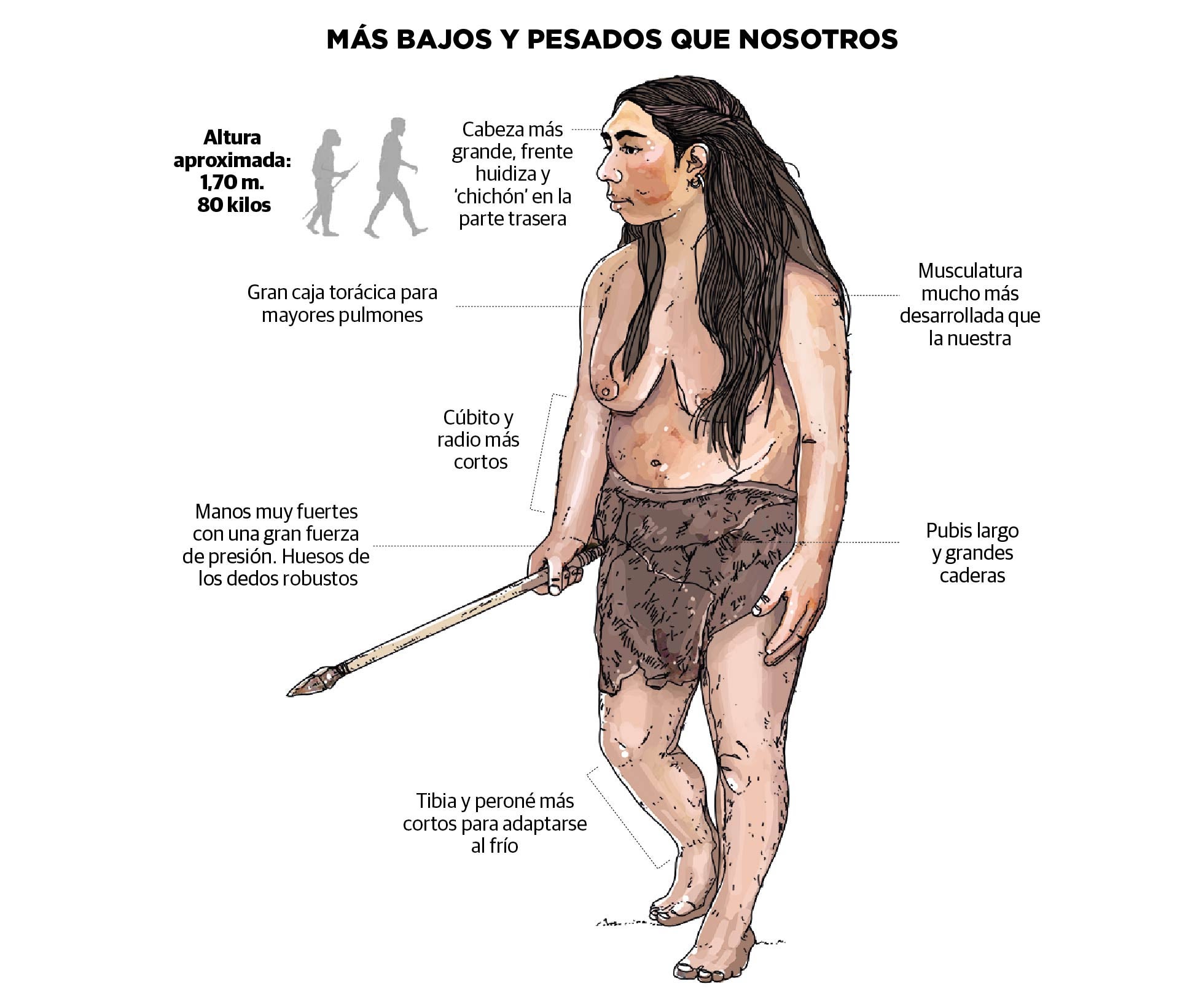 Los incisivos de los neandertales son más grandes que los nuestros, más robustos. «Los rebordes se retuercen y tienen una forma de pala característica. Los incisivos y caninos tienen raíces más grandes, prácticamente el doble que las nuestras». Nos parecemos bastante en el tamaño de premolares y molares. No hay grandes diferencias, «lo que pasa es que, en nuestro caso, hay mucha diferencia de tamaño entre los primeros tres molares, mientras que en los neandertales las tres piezas tienden a tener un tamaño parecido».