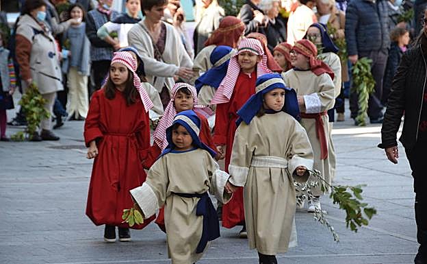 La bendición del Domingo de Ramos se celebró en la plaza municipal con la asistencia de numerosos fieles que disfrutaron de una ceremonia que, sin olvidar su carácter religioso, se acompañó de una pequeña escenificación que la hizo más atractiva para los niños y adultos que asistieron.