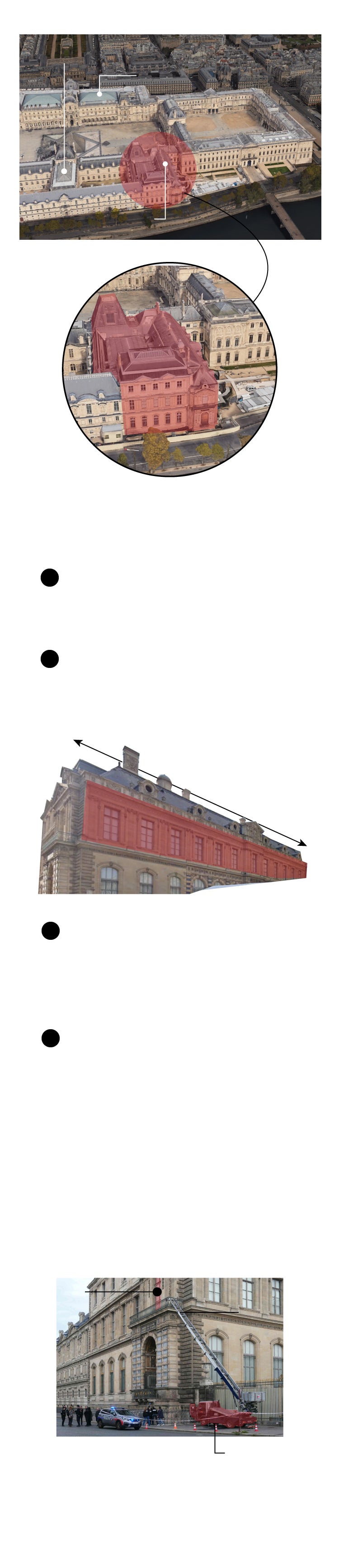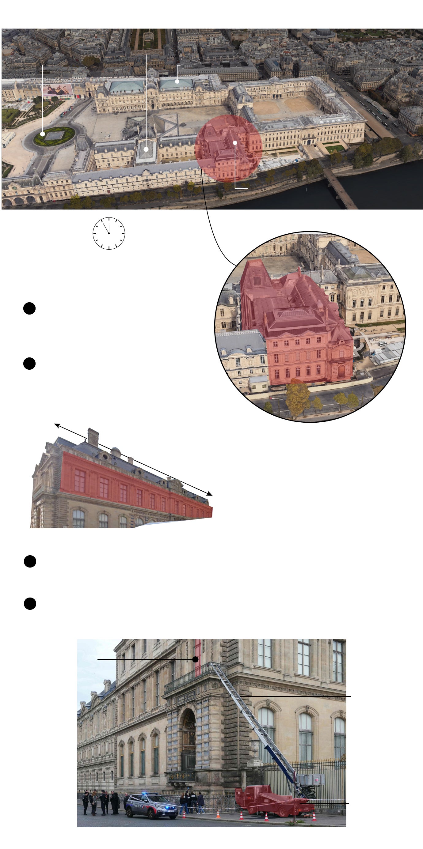 Rompieron las ventanas y dos vitrinas (la de Napoleón y la de los soberanos de Francia) con sierras radiales. Robaron nueve joyas de la corona francesa.