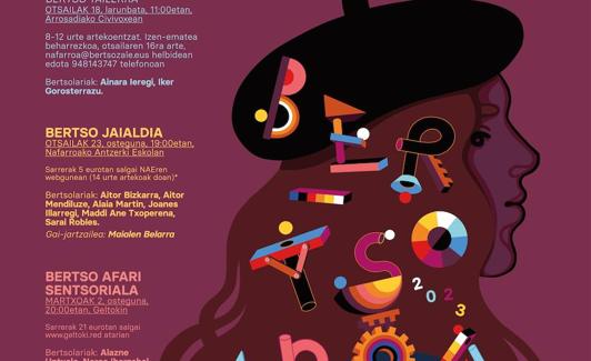 2023ko Bertsoaroan orotara sei emanaldi izango dira Iruñeko hainbat tokitan barreiatuta otsailaren 9tik martxoaren 2ra Nafarroako Bertsozale Elkarteak eta Iruñeko Udalak antolatuta. Ainhoa Larretxea arduratuko da gaiak prestatu eta jartzeaz, eta, haiei kantari arituko dira ibilbide eta herrialde ezberdinetako sei bertsolari, tartean, herrialdeetako txapelketetako lau txapeldun.