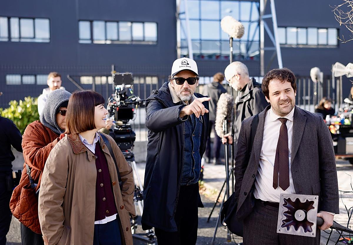El rodaje de 'Azken agurra', el tercer largometraje del donostiarra Koldo Almandoz, ha concluido este viernes. El polígono industrial de Araso, en Irun, ha sido testigo de la grabación de la última secuencia de la película: tras la advertencia «prevenidas, silencio» y el chasquido de la claqueta, el actor Iñigo Azpitarte camina entre dos hileras de pabellones hasta un gran edificio ubicado al fondo. Lleva un traje de lana que le queda ligeramente grande, las manos embutidas en los bolsillos. Cruza la diagonal que dibuja el sol sobre el asfalto y que divide la sombra de la característica luz densa de otoño. Cuando llega al edificio, abre la puerta y desaparece tras ella. «Hemos cortado», se escucha primero, y justo después, una voz emocionada anuncia que «pelikula bukatu dugu. Eskerrik asko!». Llegan a continuación los aplausos, los abrazos, sendos ramos de flores para los dos protagonistas y alguna lágrima.