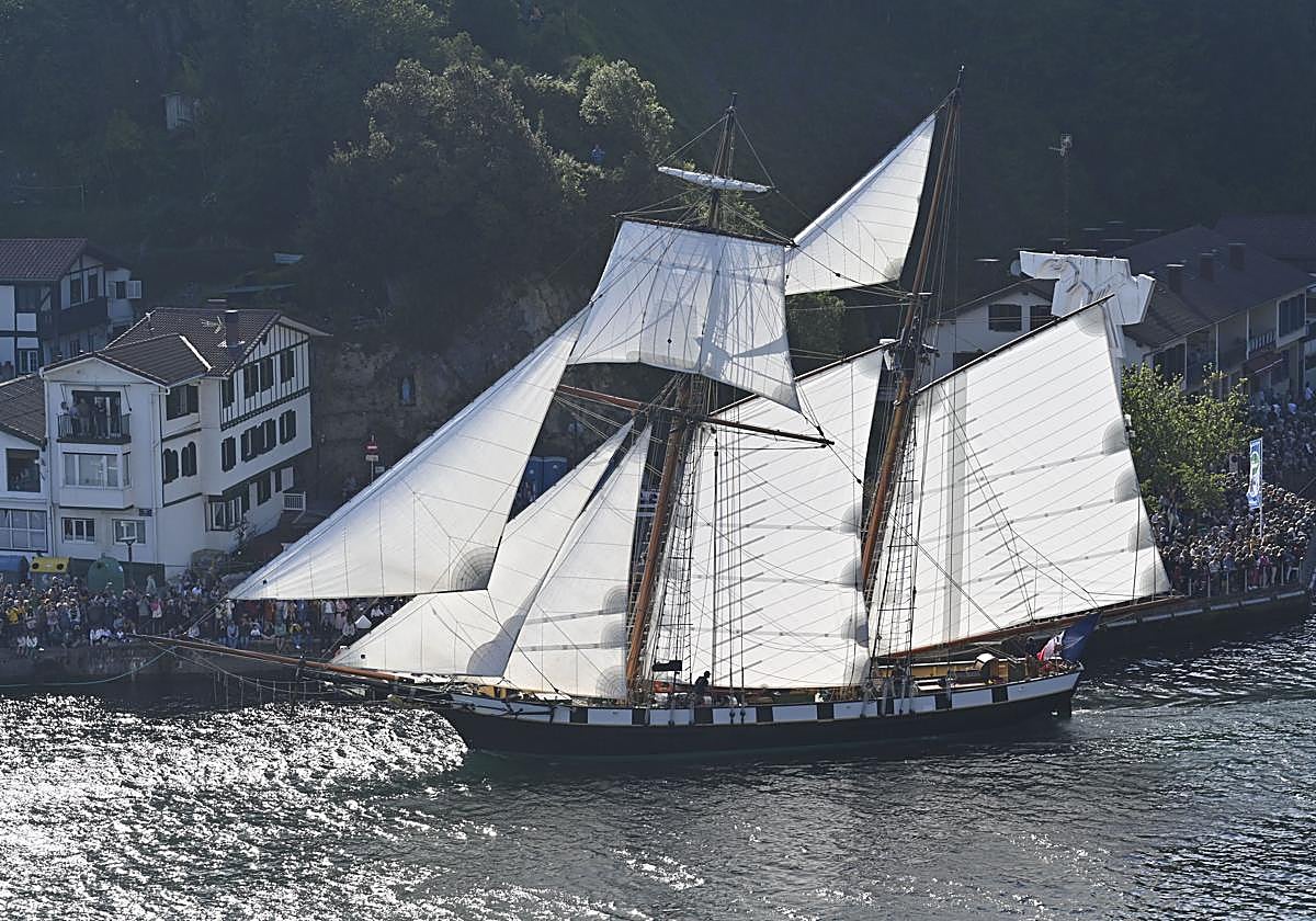 «C' est magnifique». Yann Fournier, capitán de La Recouvrance, el bretón que estudió Ciencias Políticas en París y lo dejó todo para dedicarse al mar, comparte la felicidad con su tripulación mientras maneja cuidadosamente el timón. Miles de personas llenan la bahía de Pasaia para recibir este pacífico desfile de embarcaciones que abre el Itsas Festibala. El público aplaude, suenan salvas lanzadas desde la zona de la lonja de San Pedro y hay música en vivo en San Juan.