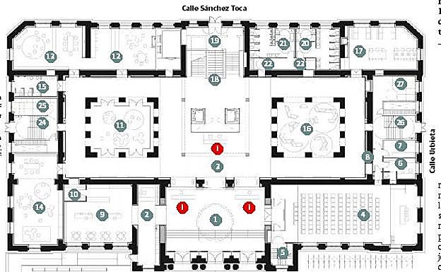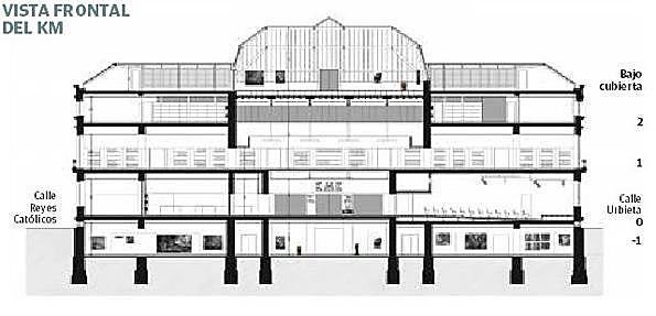 En esta planta de acceso, cuyos patios se cubrirán con un forjado que permitirá ganar espacio, la reforma dará solución a las comunicaciones internas y a las circulaciones de usuarios que, en opinión de los actuales responsables del KM, «no están bien resueltas porque tiene un deje laberíntico que ha provocado que espacios como la sala de exposiciones se conozcan poco y la Ganbara, aún menos. Son lugares que se antojan remotos debido a sus accesos», señala Itxaso. La solución adoptada pasará por un único nudo de escaleras y dos ascensores con capacidad para ocho personas cada uno que coserá todo el edificio de arriba abajo. «Los ascensores son panorámicos, lo que permitirá asomarse a la planta sótano para darle una mínima visibilidad».