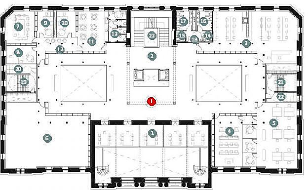 1. Gran sala principal de lectura zona palcos (entreplanta 2ª) 90,14 m2