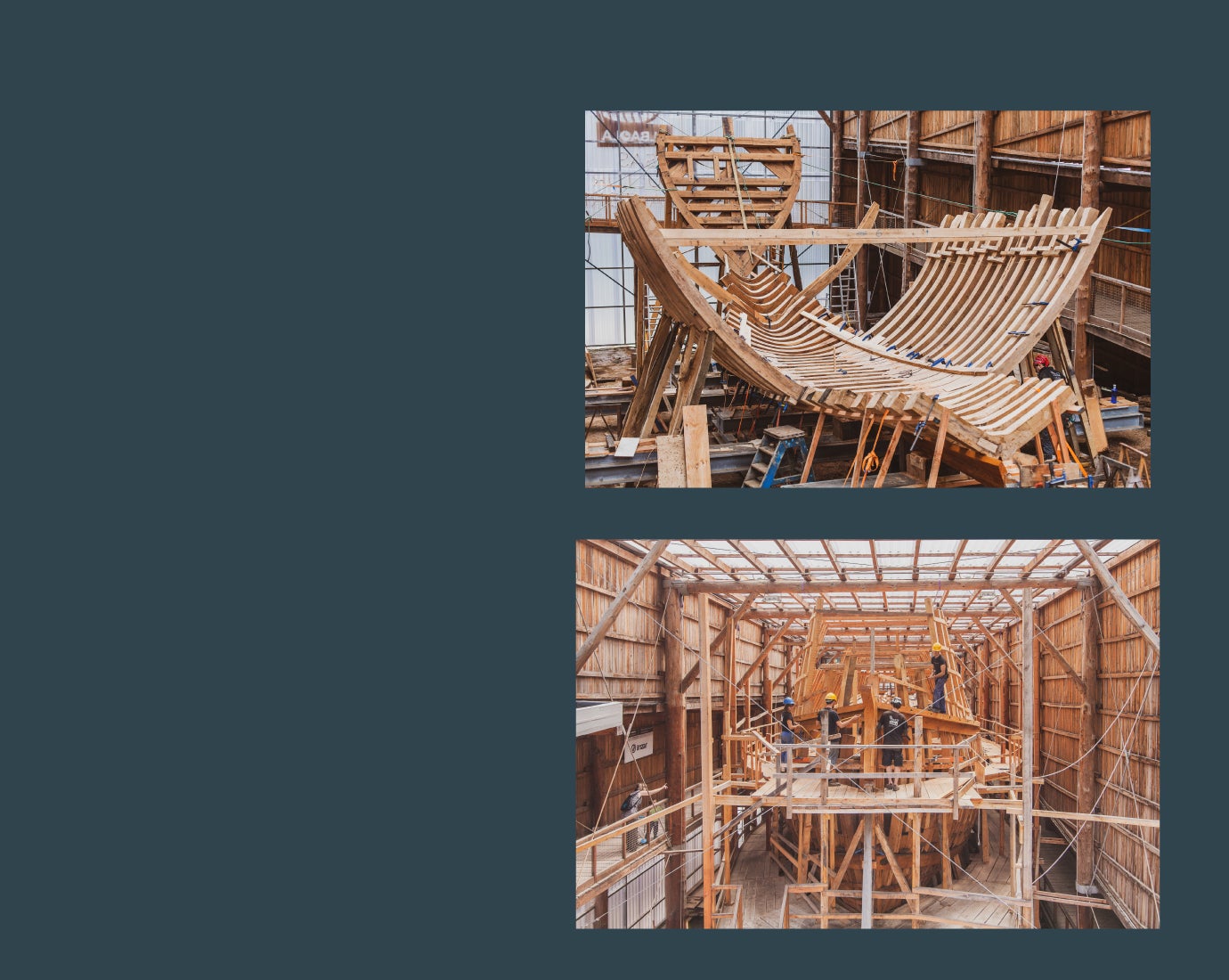 «Estamos intentando recuperar un universo tecnológico que pasó completamente al olvido», explica Agote sobre los procesos que emplean. En Albaola han fabricado cada perno, cada clavo, cada pieza para la nao. El oficio de carpintero late como en una época que ya no existe y, paso a paso, la embarcación toma forma.