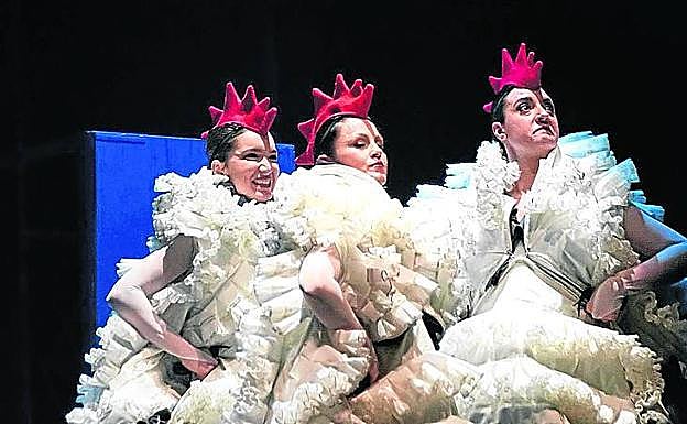 Anita Maravillas crea sus historias en el taller, con madera y cartón de falla. El relato va tomando forma mientras construyen las marionetas. «No entendemos una cosa sin la otra», dice Miren Larrea, fundadora de la compañía junto a Valentina Raposo. Traducen «conceptos considerados adultos al mundo a partir de cinco años». En 'Las Cotton' abordan la revolución industrial «a través de una familia que descubre la ciudad, la fábrica, los tejados. Se nos acercan muchos abuelos emocionados con la historia». Estrenan sus montajes en Zornotza Aretoa. A Miren Larrea le ilusiona compartir candidatura con El Espejo Negro, «que siempre ha defendido la dignidad del trabajo de titiritero. Con 18 años les vi en el Arriaga y algo en mi cabeza me dijo que tenía que moverme. Decidí ir a formarme a Barcelona».
