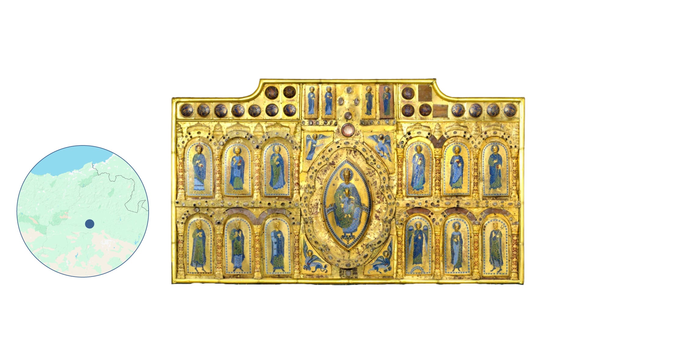 Considerado uno de los más bellos de los esmaltes medievales, este retablo es una obra fundamental del arte románico. Mide casi dos metros de longitud por 122 centímetros de altura.