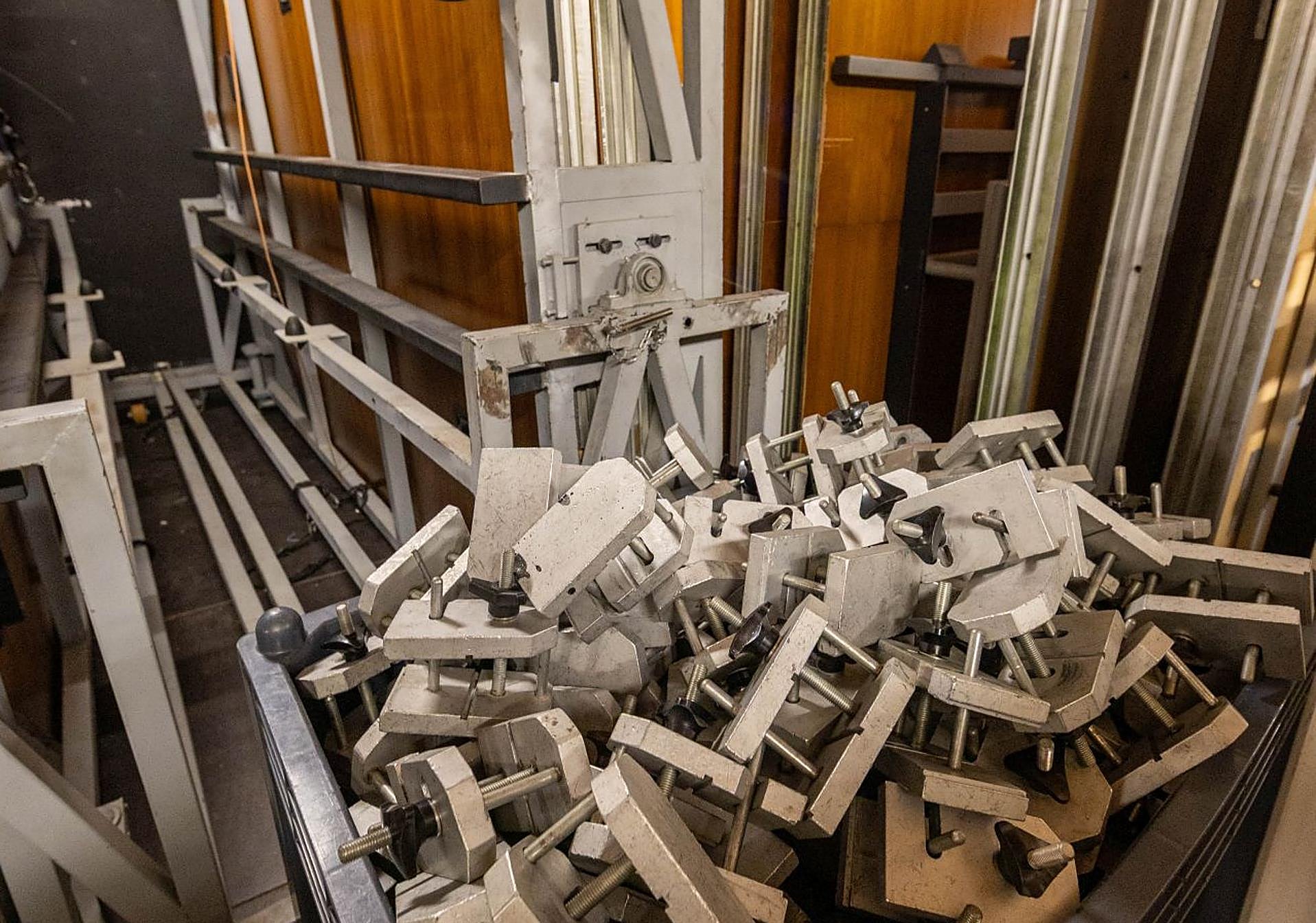 De las treinta y seis varas con las que en la actualidad se manejan escenografías, e instalaciones de sonido e iluminación, nueve son motorizadas, con capacidad para soportar mil kilos de peso, y las otras veintisiete, manuales, con un límite de hasta 300 kilos. «Cada espectáculo requiere un diseño de sonido, iluminacion y maquinaria, y cada uno de los elementos que lo conforman se instala en las varas», indica Abanda.