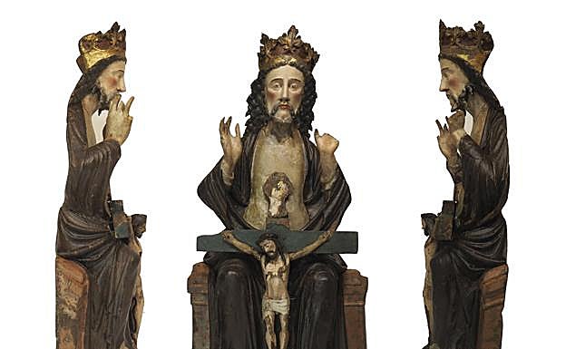 No se sabe mucho de la historia de esta 'trinidad', salvo que entró en el museo en 1908, proveniente de la parroquia de Lezo. Desde entonces y hasta que el museo municipal llegó a su actual sede se expuso en diferentes ubicaciones. El primer testimonio gráfico de esta pieza data de 1919. Una fotografía la localiza en las salas que se encontraban en la calle Urdaneta, la segunda sede del museo. Hay otra imagen, tomada de cerca, sin datar que fue donada por el historiador J. A. Lizarralde, muerto en 1935. También hay constancia de que en 1940 se encontraba expuesta en la sala de arte religioso del claustro alto del edificio de la plaza Zuloaga. Desde entonces no hay constancia de que se haya expuesto muchas veces y por lo tanto se trata de una pieza prácticamente desconocida para los donostiarras. «Hemos estado buscando documentación y la verdad es que hay muy poca. Solo sabemos que en los inicios del museo sí estuvo expuesta», comenta la restauradora de San Telmo.
