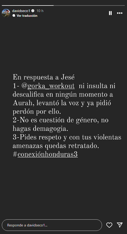 Ante estas críticas y amenazas, el defensor de Gorka Ibarguren, David Seco, no ha dudado en salir en su defensa y ha escrito tres argumentos en un story de Instagram. En primer lugar, asegura que su defendido «ni insulta, ni descalifica en ningún momento a Aurah», además precisa que «levantó la voz y perdió perdón por ello».