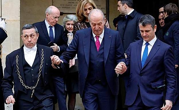 Era una de las imágenes más esperadas: la llegada del rey emérito a la ceremonia de investidura de Mario Vargas Llosa como miembro de la Academia Francesa. «Estoy divinamente», dijo a preguntas de los medios. Don Juan Carlos fue invitado personalmente por el propio escritor a a ceremonia, a la que acudió acompañado de la infanta Cristina.