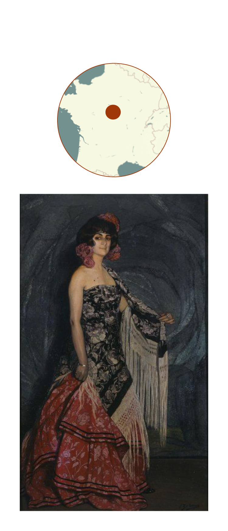 En 1903, la mirada de Zuloaga, tras su estancia parisina y su temporada en Andalucía que tanto marcó su obra, ya estaba consolidada. Esta pintura es un manifiesto del folclore del que se enamoró viviendo entre la cultura gitana y el flamenco, en un momento decisivo para el país, cuando el resto de Europa miraba con curiosidad el debate entre la tradición y la modernización.