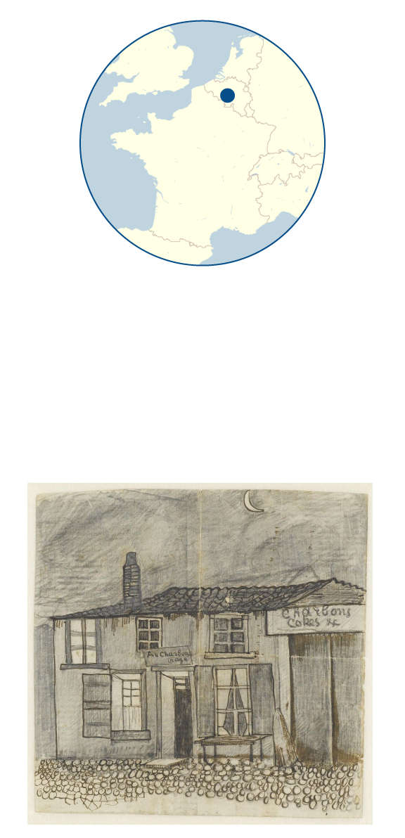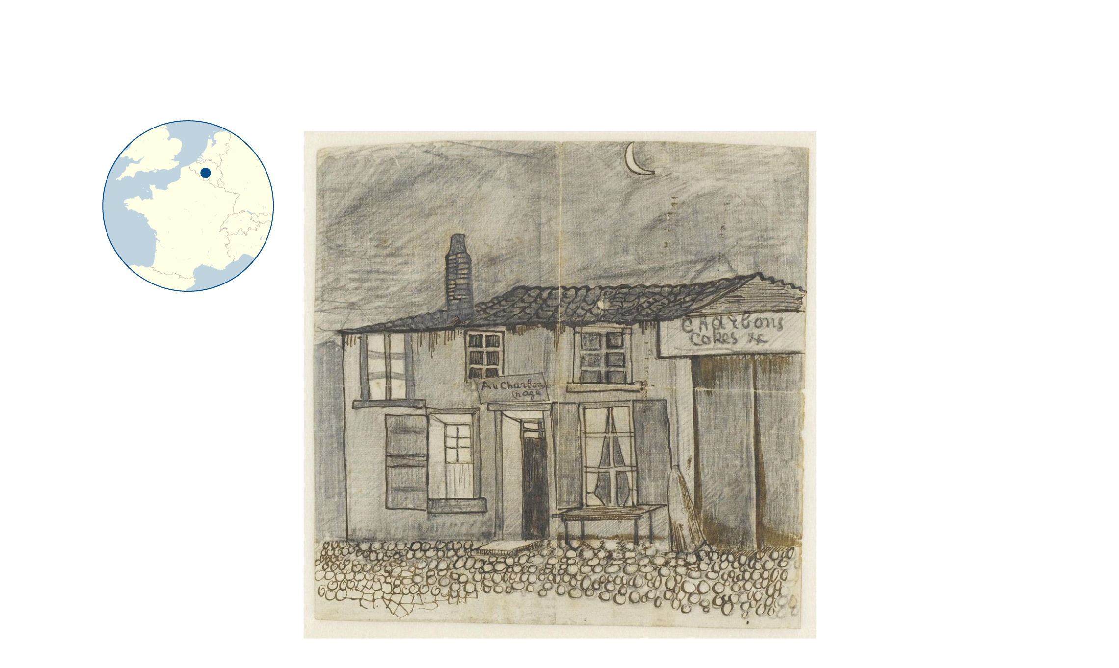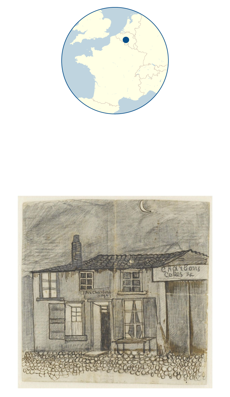 Durante su etapa en Bruselas Van Gogh se dedicó a hacer esbozos y dibujos. Pero dos años antes, en noviembre de 1878, el pintor estuvo de paso en la capital belga porque se dirigía al Borinage, una región minera ubicada al suroeste del país como misionero laico. Durante esa breve estancia en Bruselas, se sentó en un café de obreros llamado Au Charbonnage a escribirle una carta a su amado hermano, Theo. Dibujó ese bar urbano y rústico con trazos poco delicados, tonos grises y sombríos, casi sin crear dimensión y sugiriendo un ambiente melancólico, sucio y pesado.