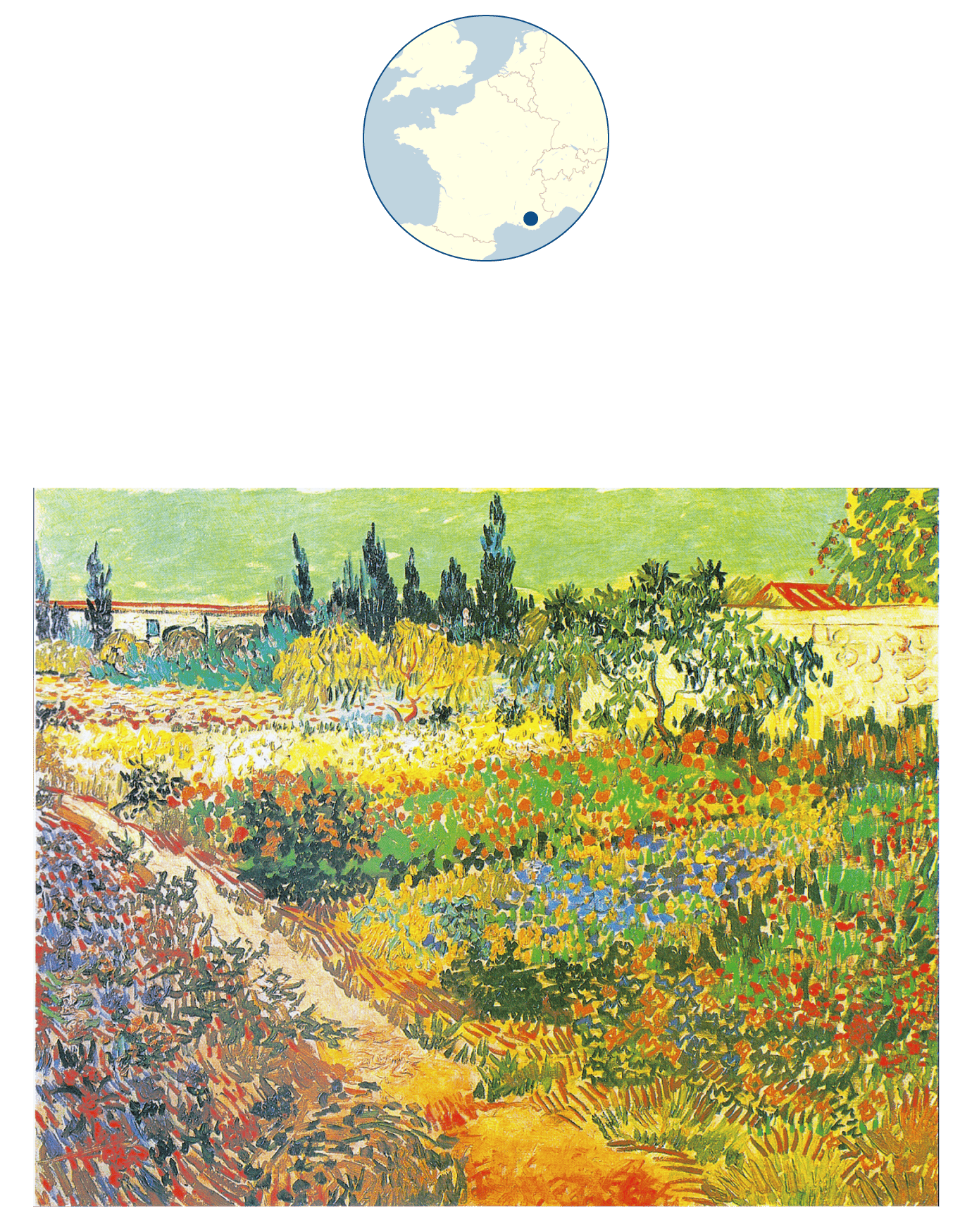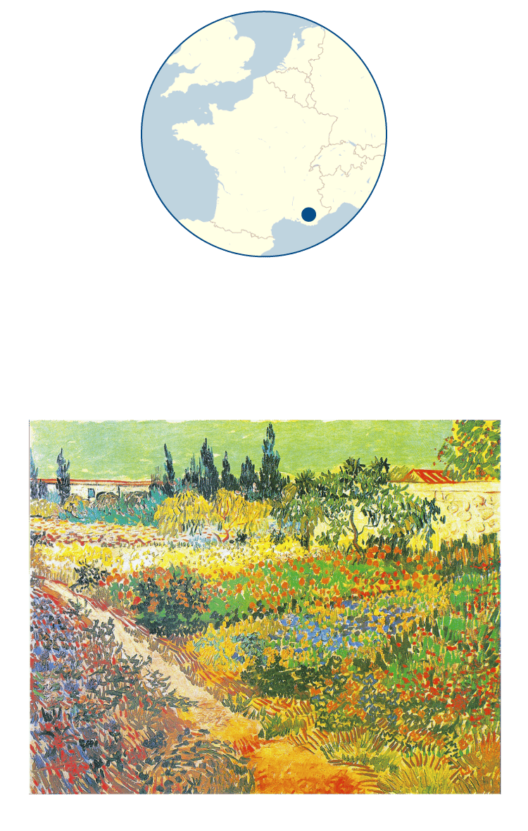 Llegó en 1888 y disfrutó de su etapa más productiva. Allí empezó a utilizar sus pinceladas características y su paleta de amarillos y azules