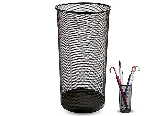 Diseñado con estructura de malla metálica, el paragüero TECHZOCO ofrece ventilación eficiente y secado rápido para los paraguas. Su base sólida proporciona estabilidad y orden en cualquier espacio. El acabado en negro y las dimensiones compactas de 50 cm de alto y 25 cm de diámetro combinan durabilidad y estética moderna en un accesorio resistente y funcional para la entrada.