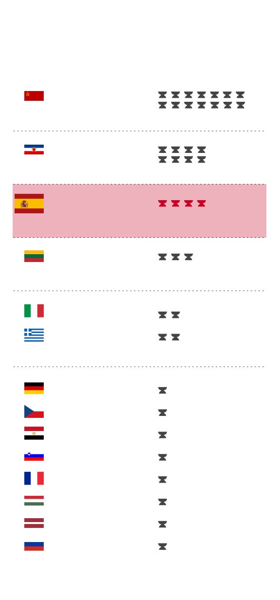 Hasta el domingo, España estaba igualada con Lituania en número de títulos continentales, pero con la conquista de su cuarta corona la selección dirigida por Sergio Scariolo es ahora tercera en solitario en el medallero del Eurobasket.