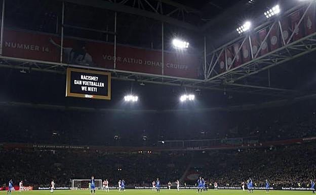 Mensaje contra el racismo en el fútbol holandés durante el partido del Ajax Maurice van Steen (EFE)