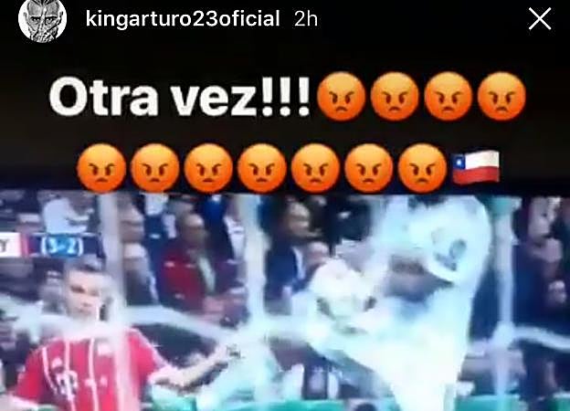 El centrocampista colgó dos 'stories' en su cuenta de Instagram quejándose por el arbitraje del colegiado turco Cüneyt Çakir. El primero, con la imagen que muestra cómo el balón golpeó en una mano de Marcelo tras un centro de Kimmich, posiblemente dentro del área. «Otra vez, penal de mierda», escribió junto a emoticonos de caras rojas de enfado recordando la polémica de la pasada temporada en la eliminatoria de cuartos de final.