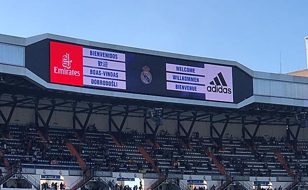 Desde dos horas antes había mucho revuelo por el Bernabéu, plagado de turistas. Los valientes que buscaron en la reventa. Los que accedieron al estadio fueron recibidos en siete idiomas por los videomarcadores. Ninguno era el catalán para disgusto de Inés Arrimadas: chino, ruso, inglés, portugués, alemán, francés y castellano. La megafonía atronó desde 90 minutos antes con temas navideños. La espera fue edulcorada. A las 12:16 saltó André Ter Stegen y se llevó una pitada de las gordas mientras calentaba en el único área con sol hasta ese momento. ¿Jugaría con gorra por el sol? No lo hizo, usó la mano como los metas míticos.
