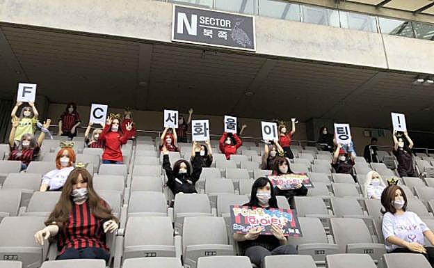 Muñecas hinchables en las gradas del estadio del FC Seoul. Efe