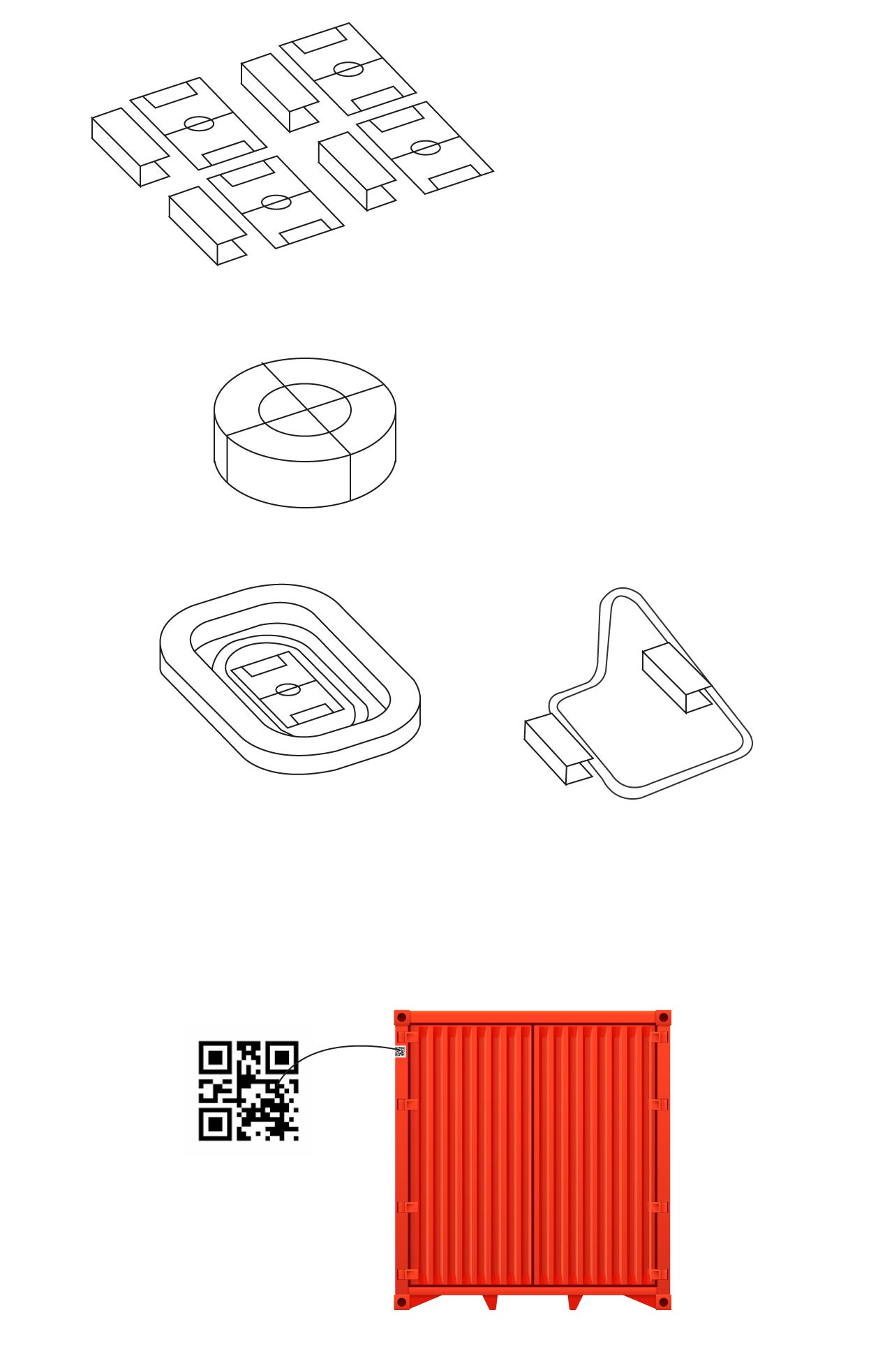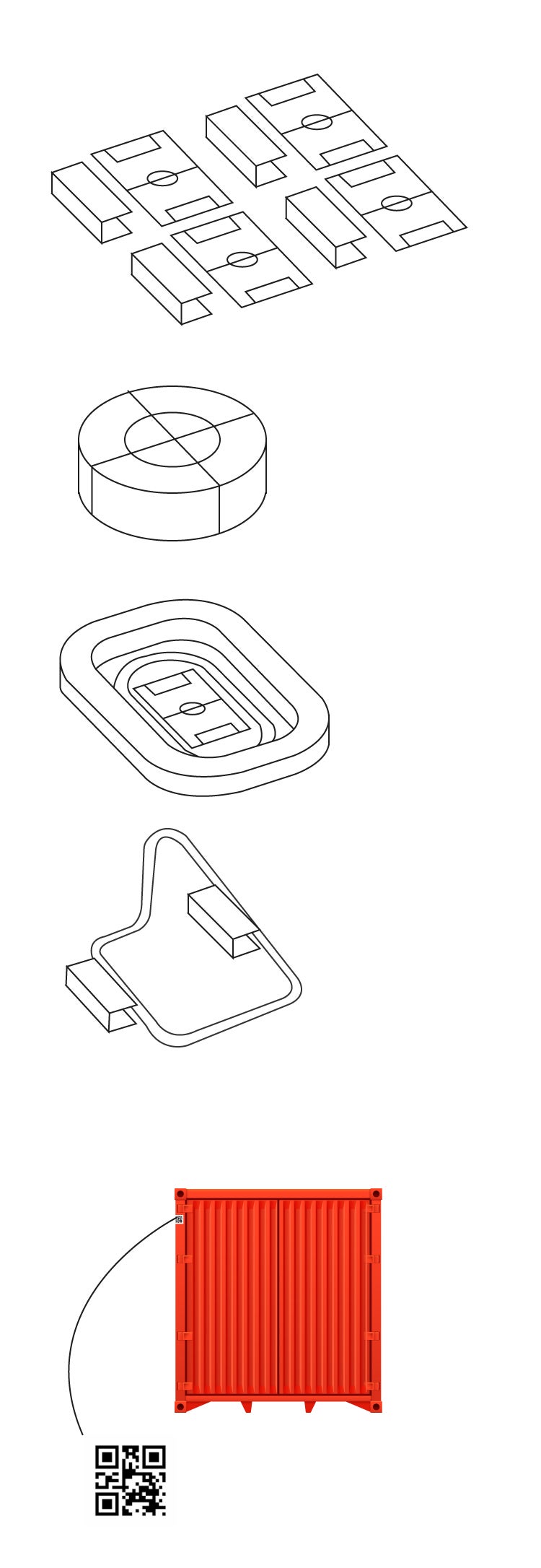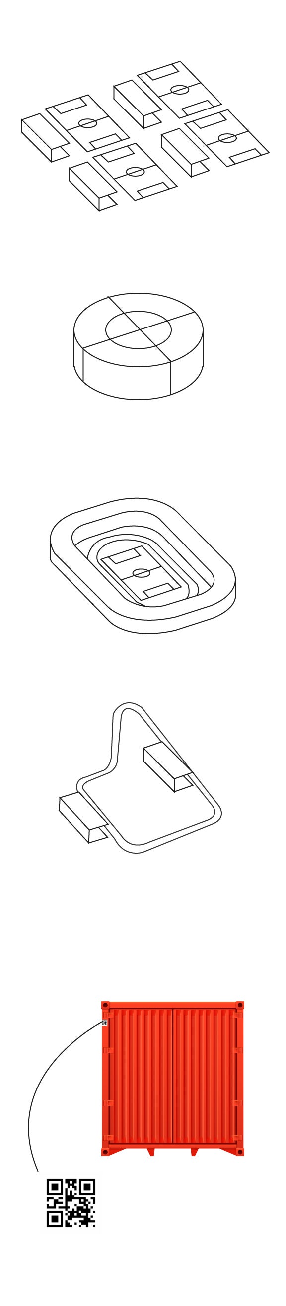 Cada contenedor tiene un código QR para su identificarlo y saber dónde y cómo orientarlo, así como facilitar su montaje.