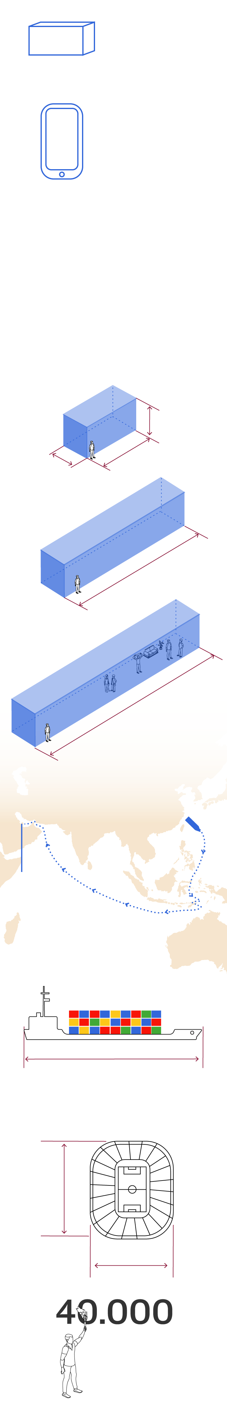 Los contenedores tienen unas medidas especiales, no son aquellos que estamos acostumbrados a ver en barcos. Se ha construído con tres tamaños.