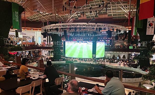 Qatar a veces es Venecia, a veces París y siempre Las Vegas. En el centro comercial Villaggio, a cuatro pasos del estadio Al Khalifa, uno ... puede pasearse en góndola, patinar sobre hielo, montarse en una montaña rusa y merendar unos croissants en una coqueta cafetería con sillones estilo imperio. Durante el Mundial, la insólita fauna que recorre sus pasillos, pulidos y brillantes, es de una variedad muy entretenida. Se ven camisetas de todos los colores, bermudas, bufandas, banderolas atadas al cuello. Mexicanos, ecuatorianos y argentinos han inundado Doha como traídos por alguna extraña marea y caminan estupefactos por los pasillos. Gondoleros filipinos o ceilaneses los recogen en sus barquitos de madera y los llevan por un canal rectilíneo que desemboca en un pequeño lago, con el tamaño justo para darse la vuelta y volver. Muchos hacen fotos al cielo, que es, en realidad, un techo pintado de azul con nubecitas blancas. Les cobran algo más de tres euros por persona.