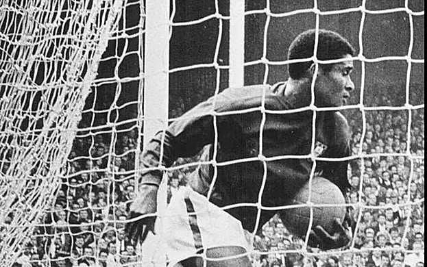La 'pantera negra' es historia del fútbol portugués y hasta la llegada de Cristiano Ronaldo era considerado el mejor futbolista del país luso. Su gran marca se fraguó en el Mundial de Inglaterra 1966, cuando consiguió llevar al tercer puesto a la selección -el mejor de su historia- y acabar como el máximo goleador, con nueve tantos, algo que ni Cristiano Ronaldo ha conseguido superar a pesar de haber disputado cuatro Mundiales (ha sumado 7 goles). La FIFA lo nombró el séptimo mejor jugador de siempre.