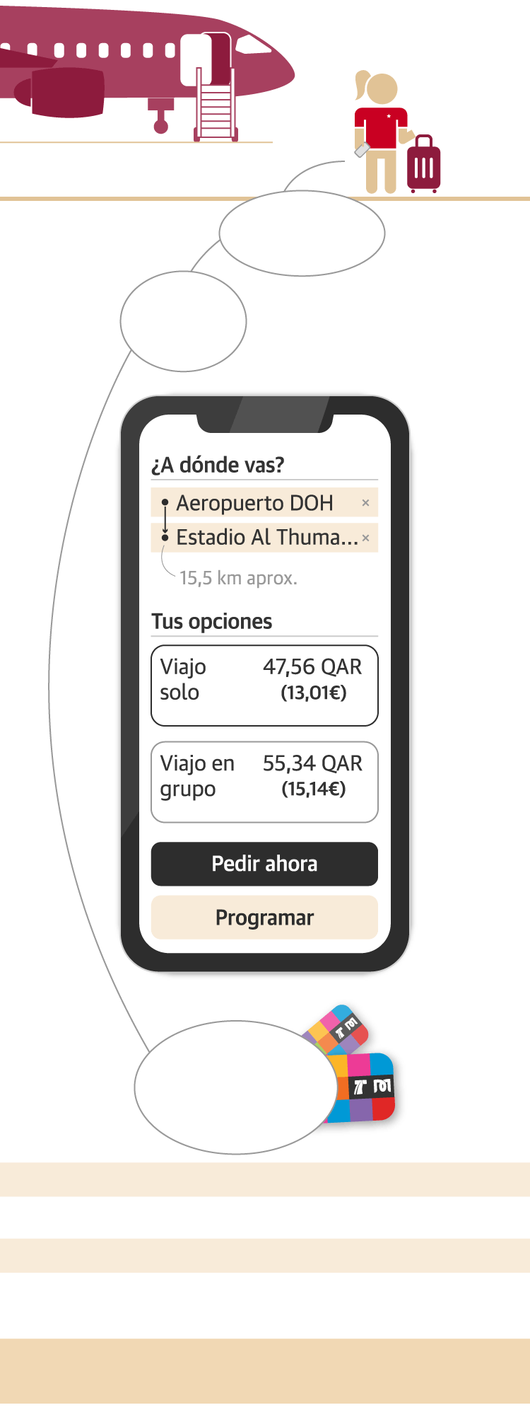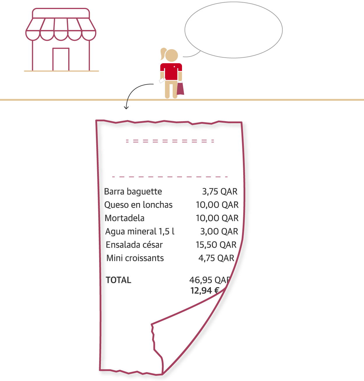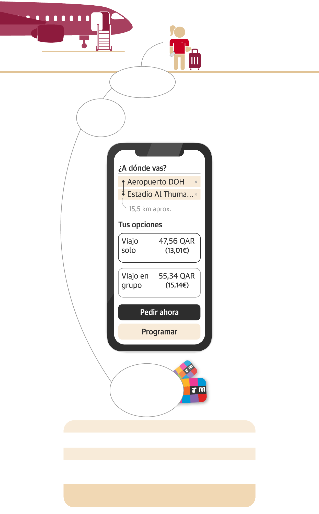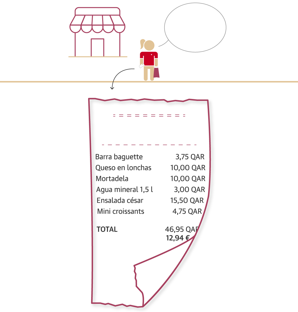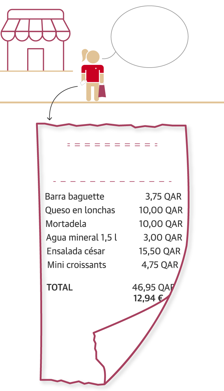 Una vez allí, tenemos que tener en cuenta el cambio de divisa. Un riyal catarí equivale a 26 o 27 céntimos de euro, aproximadamente. En este viaje simulado nos ayuda Anna, una amiga que lleva diez años viviendo en Doha.