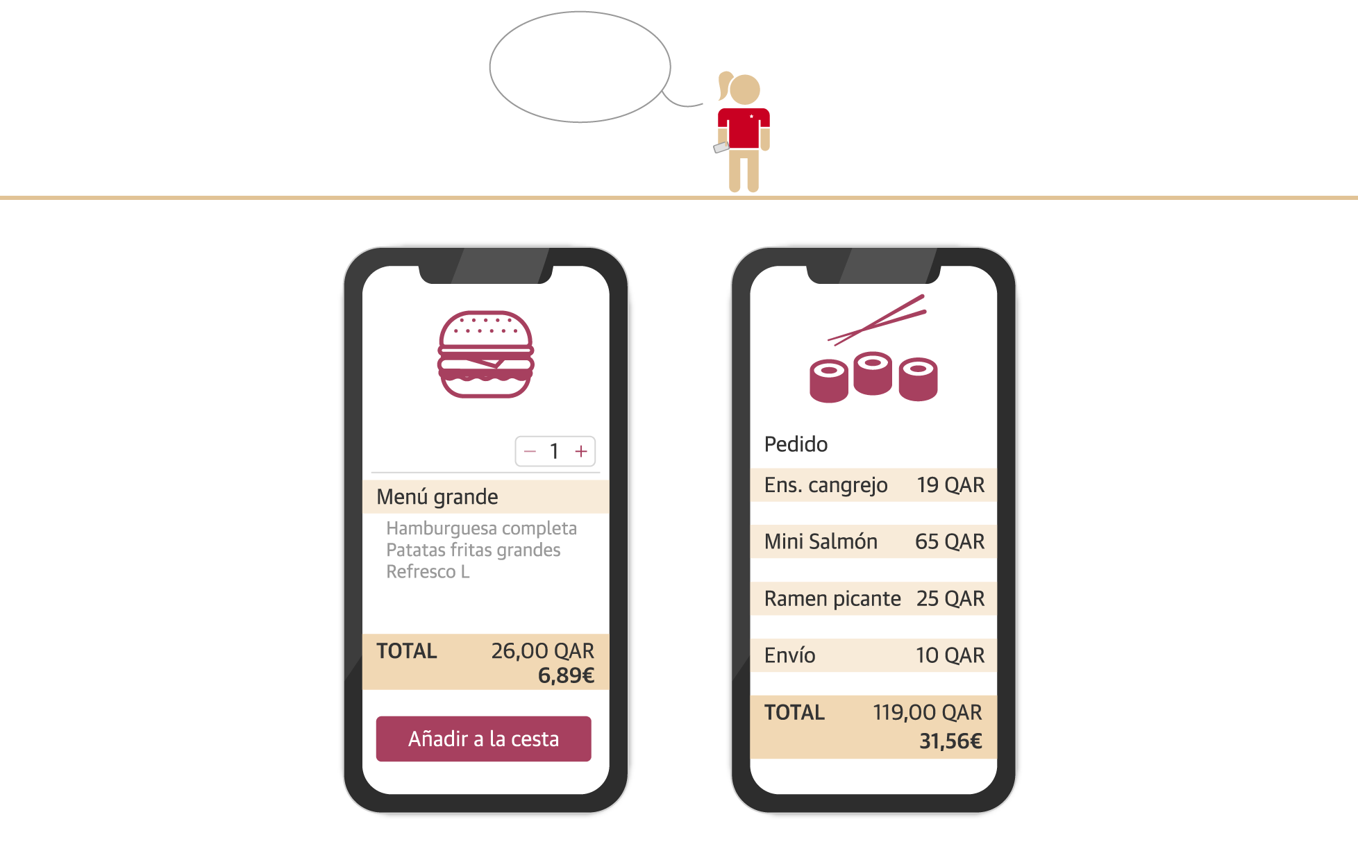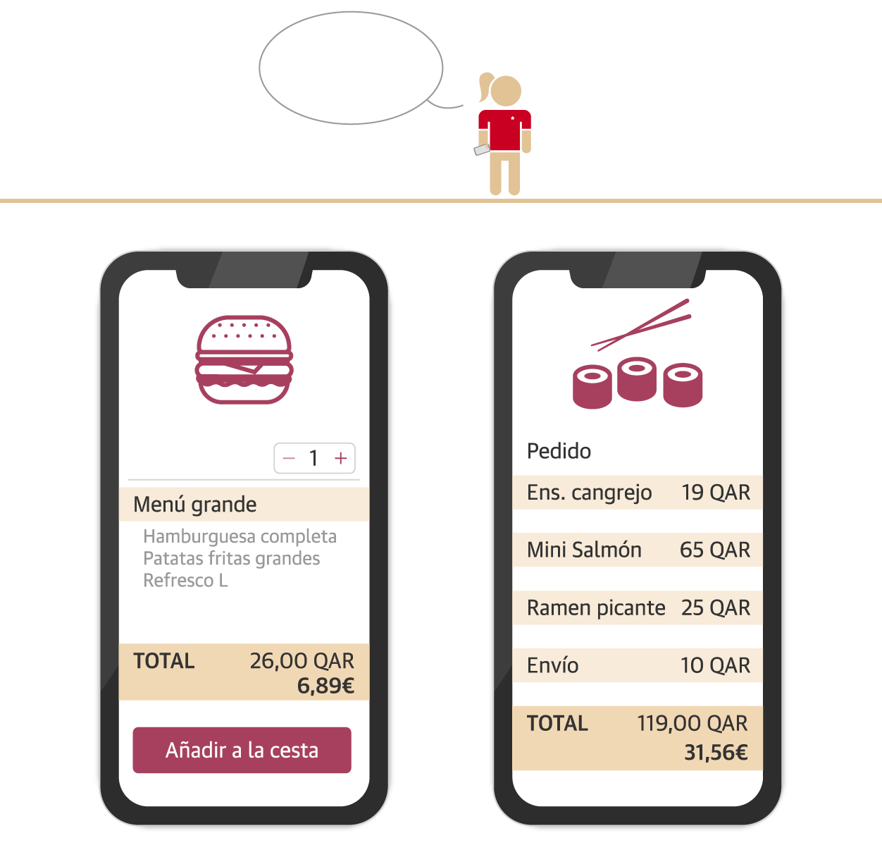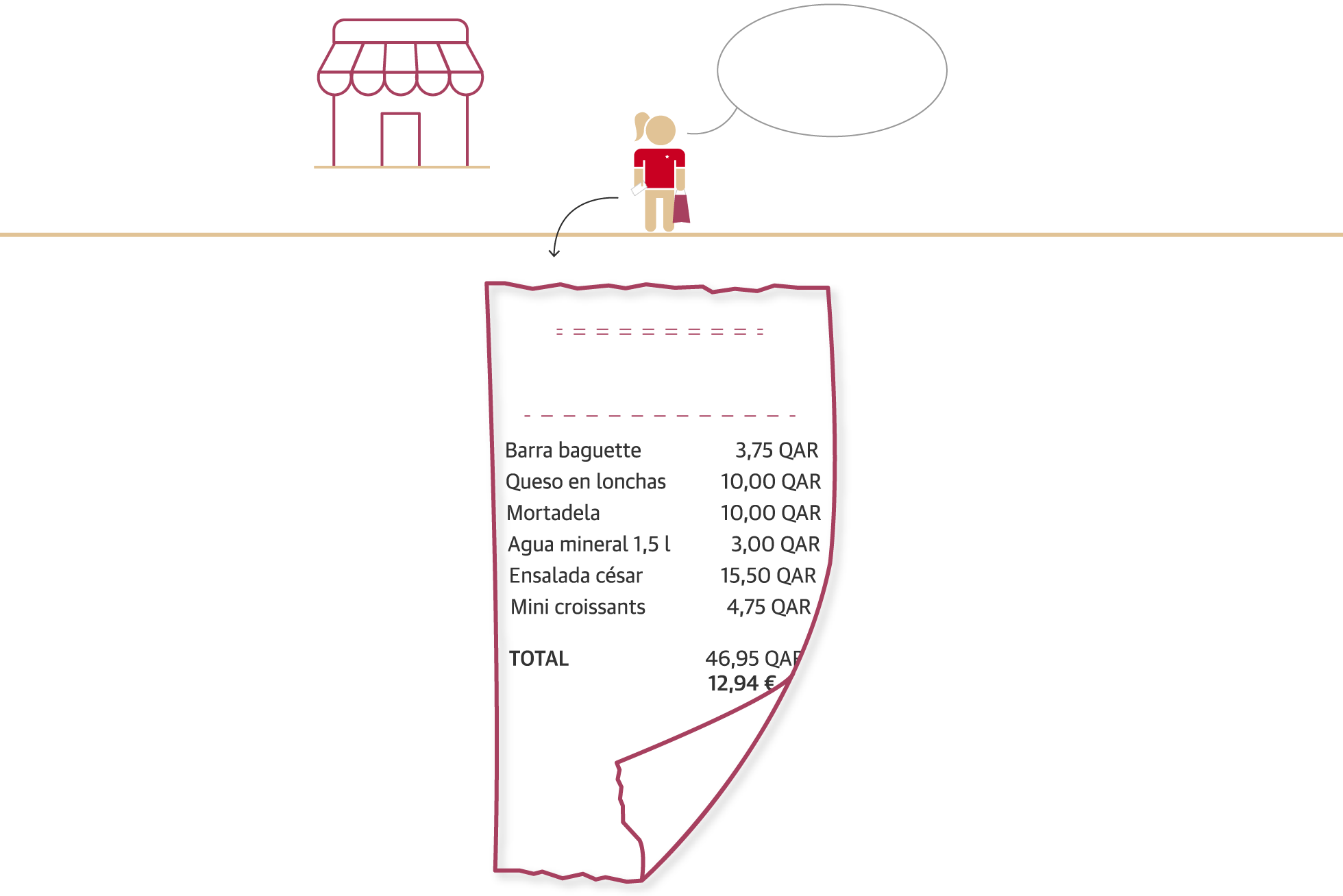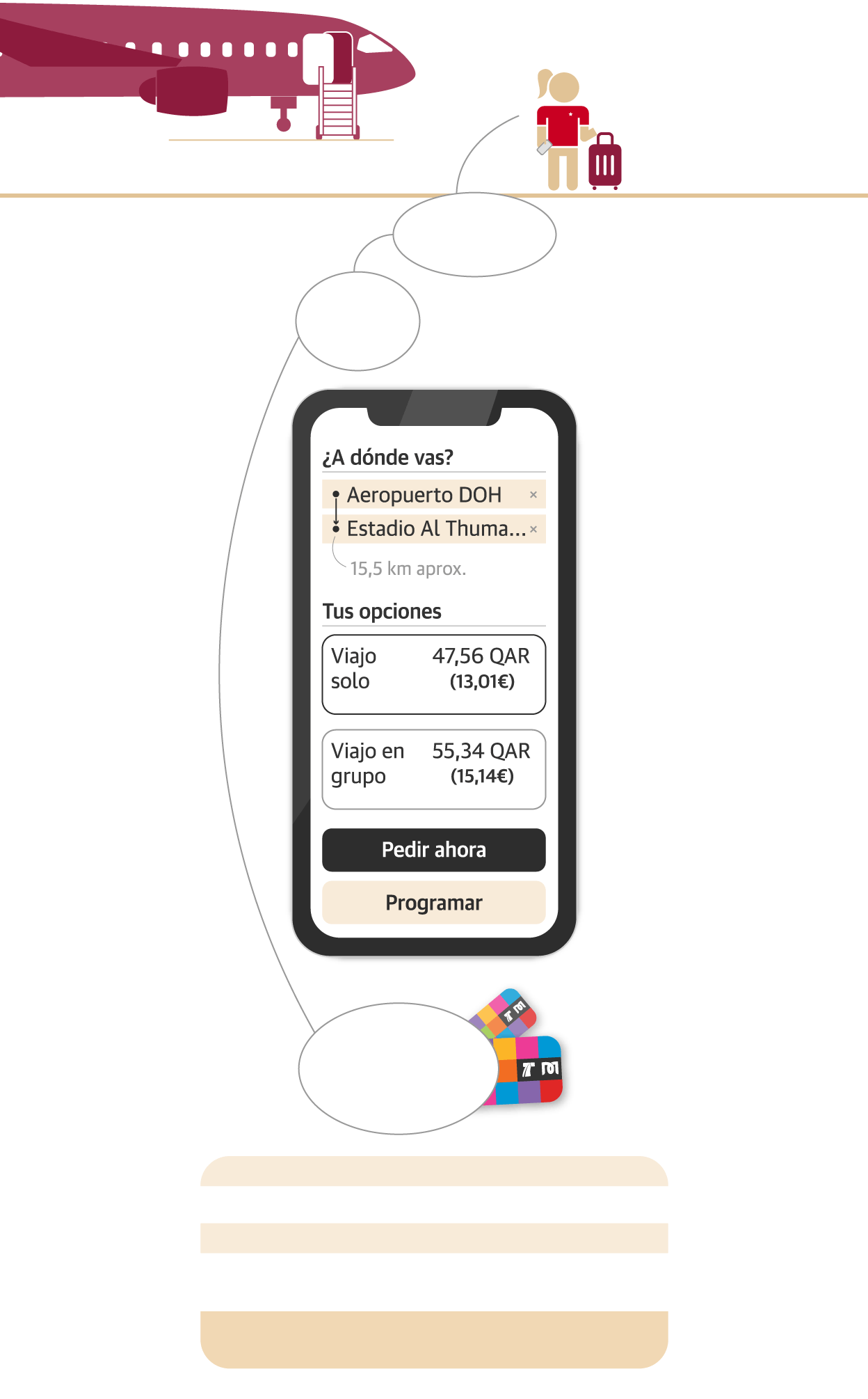 Una vez allí, tenemos que tener en cuenta el cambio de divisa. Un riyal catarí equivale a 26 o 27 céntimos de euro, aproximadamente. En este viaje simulado nos ayuda Anna, una amiga que lleva diez años viviendo en Doha.