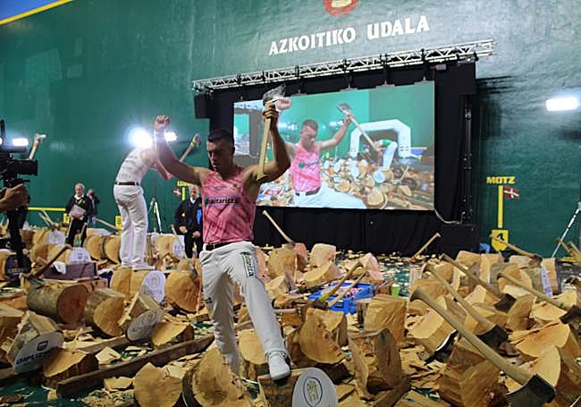 – Concederá dos troncos de ventaja a Eneko Otaño, el único que respondió a su desafío. Tendrá que cortar 14 kanaerdikos y cuatro oinbikos y Otaño se enfrentará a 12 troncos de 54 pulgadas y los mismos cuatro de 72.