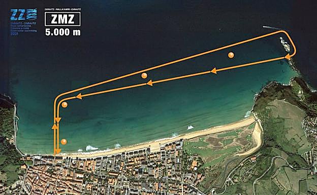 El sabado 24 de julio se celebrará la prueba larga. Será un Zarautz-Mollarri-Zarautz con salida y llegada en la playa, en la que los nadadores tendrán que nadar en paralelo a la costa una distancia de 5.000 metros. La salida tendrá lugar a las 9 de la mañana y contará con una participación límite de 500 personas. (Ver recorrido en la imagen de abajo).