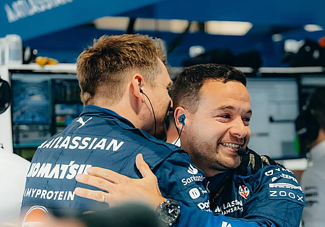 – Soy el jefe de coche de Alexander Albon. El responsable de los mecánicos del coche '23'. Entre otras cosas indico al monoplaza cuándo tiene que salir a la pista en cada sesión. Dentro de la estructura tenemos un jefe de coche para cada piloto —el de Carlos Sainz y el de Albon—.