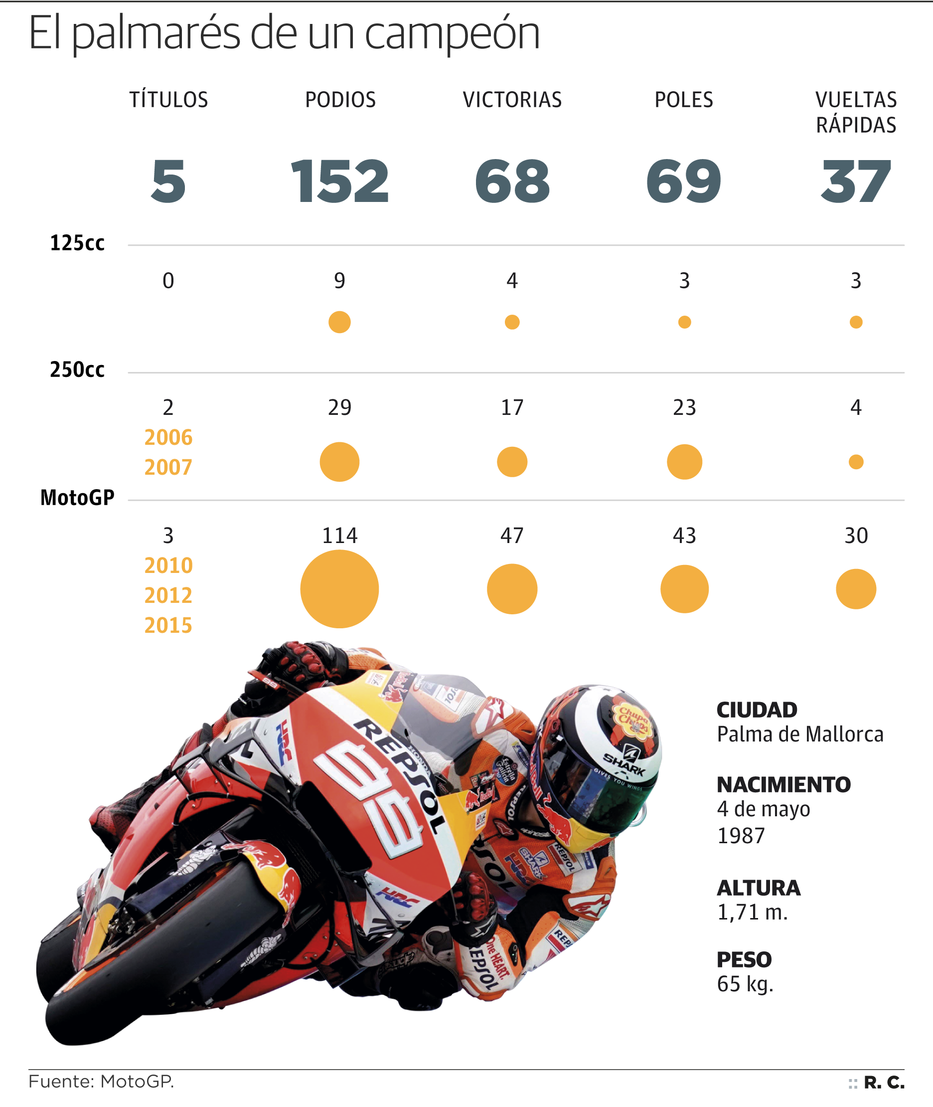 Después de confirmada una retirada por la que se le había ido preguntando a Lorenzo a lo largo de este curso, sobre todo en este último tramo, opción que en público siempre quiso desmentir, al piloto balear le tocó hacer un repaso de una carrera brillante, con cinco títulos mundiales, tres de ellos en MotoGP (el primer español en lograrlo tras el cambio en la categoría reina desde los 500cc), 68 victorias, 152 podios y 69 poles. «Mis nueve años en Yamaha fueron maravillosos, probablemente los mejores de mi carrera. Entonces entendía que necesitaba un cambio. Decidí fichar por Ducati y eso le dio un nuevo impulso a mi motivación. Y aunque los resultados fueron muy malos al inicio, eso me dio un extra de motivación para no rendirme y conseguir aquella increíble victoria de Mugello, delante de los fans de Ducati. Después firmé por Honda, lo que me supuso un nuevo reto. Porque es con lo que sueñan todos los pilotos, correr para el Repsol Honda. Desafortunadamente, las lesiones llegaron demasiado pronto y afectaron a mis resultados. No he sido capaz de estar en condiciones físicas normales para ser rápido y competitivo», lamentó Lorenzo, de 32 años.