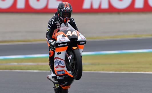 En este caso, cuando su moto tenía una inclinación de 70.8 grados, según la información facilitada por su equipo. «No es provocada, pero hemos picado 70 grados, que es récord de inclinación», explicaba entre risas. «Esta vez con la salvada me he ido incluso fuera de la pista y ha habido un momento, cuando me iba hacia dentro, en el que iba a dejar ya la moto porque pensaba que 'esto no se salva'; pero antes de hacerlo he pensado 'venga, vamos a ver qué pasa' y he dado gas y se ha levantado la rueda un poco y he podido salvarla, así que contento por el show, pero por nada más porque si la salvas quiere decir que algo pasa».