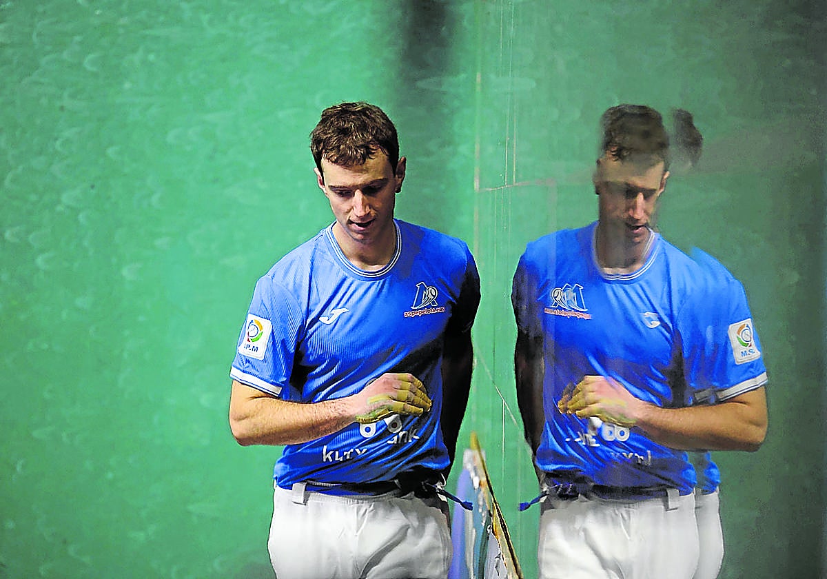 Zabala cruza un gancho en el tanto siguiente al de la volea de Etxeberria al cuerpo del delantero contrario cuando trataba de levantarse en el txoko. Para entonces, el subcampeón del Cuatro y Medio ha decidido apoyarse más en su zaguero, en Martija. La pareja es cosa de dos y funciona mejor bajo ese parámetro, a veces complicado de entender si bien parece de comprensión sencilla.