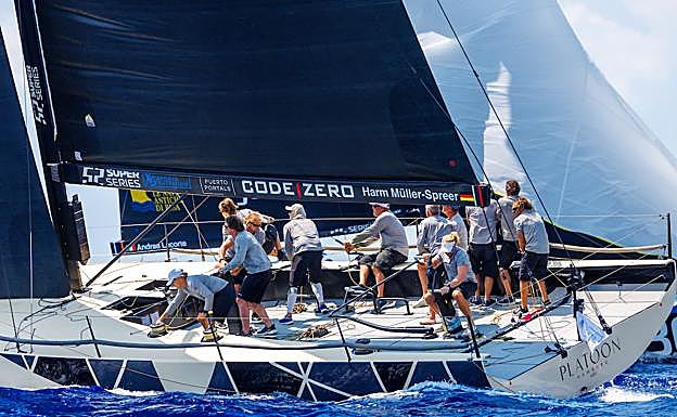 La primera del día comenzaba con un doloroso fuera de línea de Provezza mientras sus rivales se escapaban por proa. El primero en completar el tramo inicial fue Sled, acechado por Alegre, pero era Platoon Aviation el que cruzaba líder el ecuador del recorrido tras una magnífica empopada. El equipo de Harm Müller-Spreer, que cuenta con el estratega mallorquín Jordi Calafat e incorporaba esta semana al navegante catalán Joan Vila, lograba mantener a sus rivales por popa y conseguir una victoria que realmente necesitaban. Platoon Aviation ha pasado por todo tipo de vicisitudes a lo largo de la temporada, incluyendo la pérdida de su botalón y la consiguiente penalización en una colisión con Alegre ayer. Aunque lejos de la cabeza de la provisional de Puerto Portals, el triunfo supone una inyección de confianza para el equipo y les recuerda que siguen siendo uno de los grandes entre la flota.