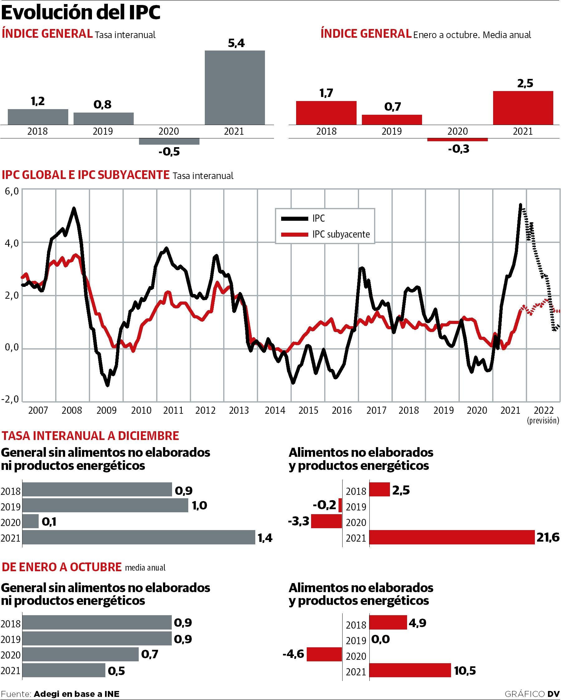 «Lo atípico de la situación se aprecia claramente en la diferencia entre la inflación general y la llamada inflación subyacente, que es la que no tiene en cuenta la energía y los alimentos frescos; la primera en octubre fue del 5,4%, pero la segunda fue del 1,4%», añaden desde Adegi.