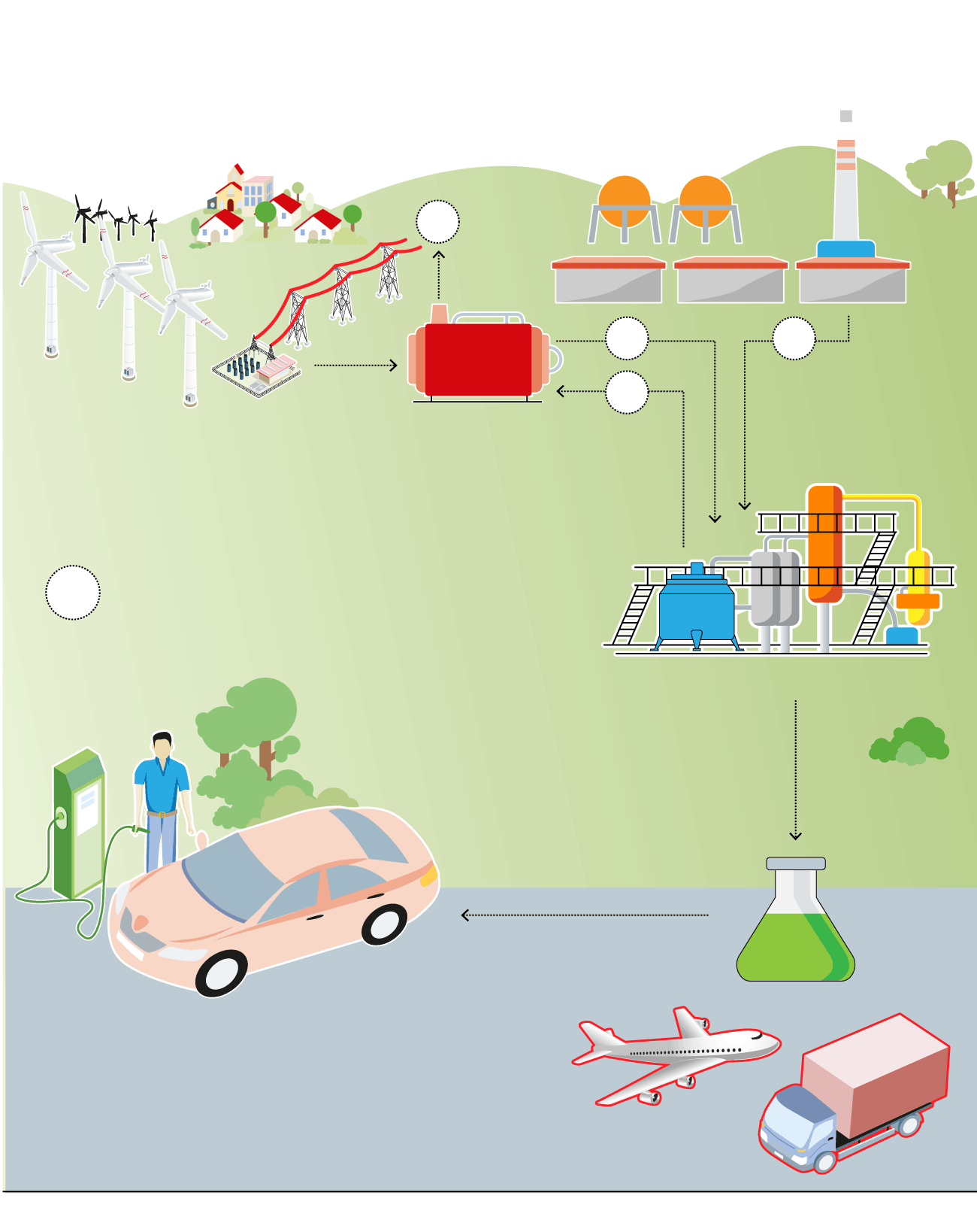 Utilizando sólo el hidrógeno renovable y el CO2 capturado, se producen combustibles sintéticos