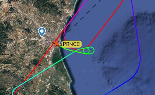 Un avión privado Sao Paulo - Barcelona ha tenido que aterrizar en Valencia en la mañana de este viernes debido a que el espacio aéreo catalán se encontraba cerrado. El color rojo indica que iba a gran altitud de vuelo, cerca de 40.000 pies, y el descenso se produce en el área de Valencia en vez de gradualmente hacia Barcelona, que está cerrado. Según AENA, cada día aterrizan o despegan de los aeropuertos españoles unos 5.300 aviones, este jueves, concretamente, fueron 5.365.