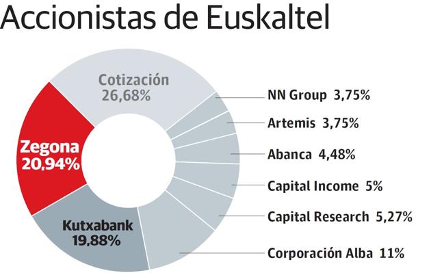 Hoy día, está por ver si accionistas vascos presentes en Euskaltel podrían sumar ese cuarto del capital; aunque fuentes del mercado afirman que estarían cerca, advierten de que quizás les pudiera faltar una pequeña parte. Y es que el porcentaje de Kutxabank, sumado al que tienen algunas entidades de previsión social complementaria (EPSV), rozaría ese 25%.